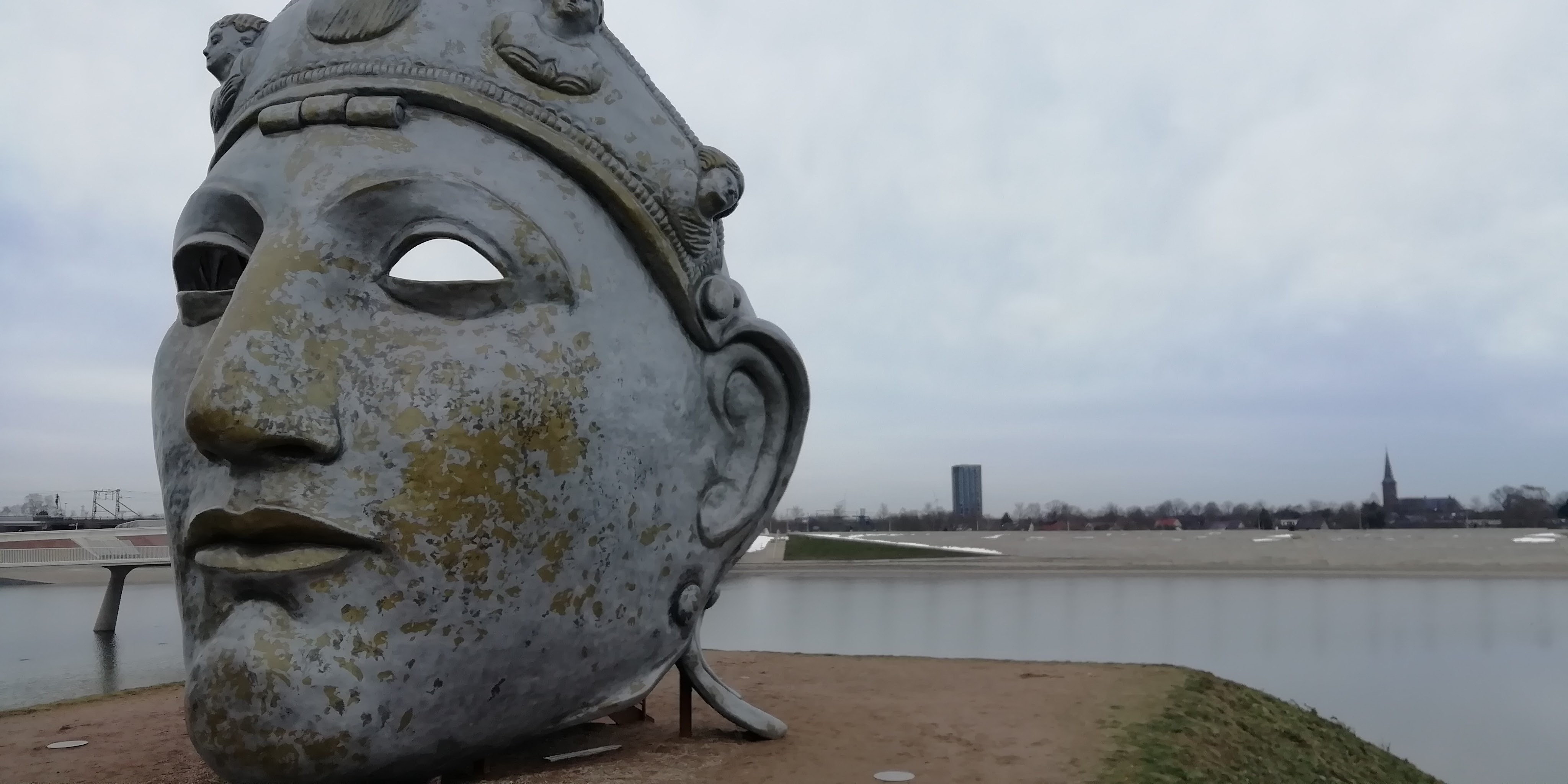 The Waal Bridge‘The Face of Nijmegen.’ A soldier’s mask from the Roman Era. Monumental sculpture by Andreas Hetfeld