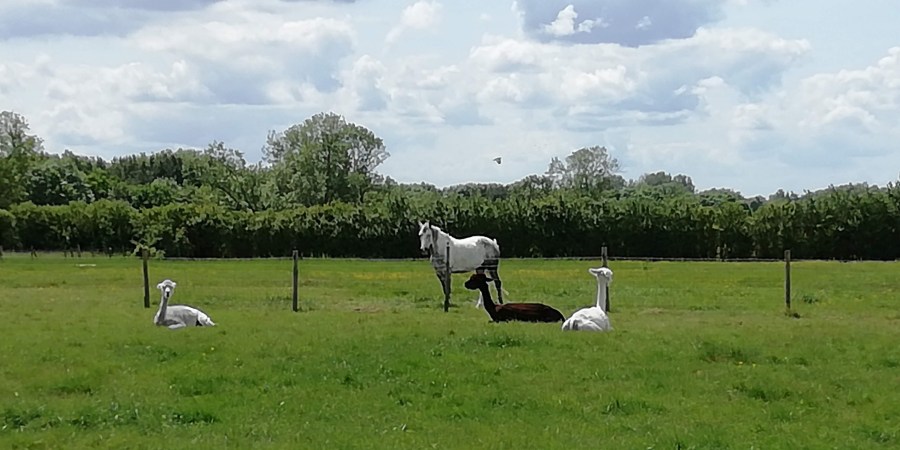 Hornless unicorn and llamas
